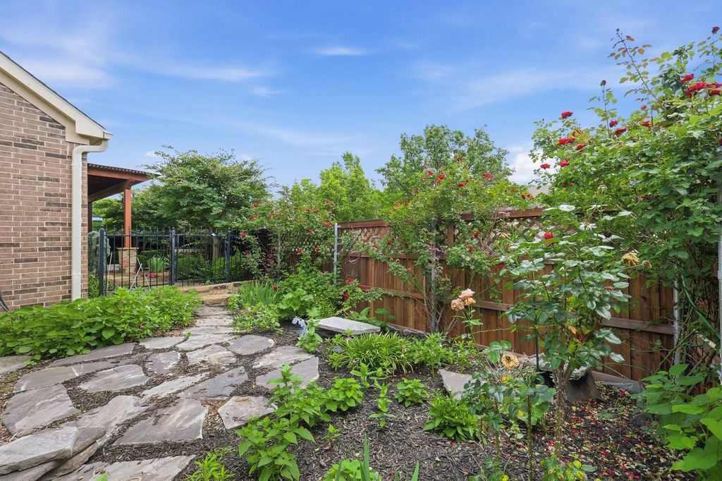 Located in the desired Homestead neighborhood, this stunning, north-facing, 1 story home is situated on a desirable corner lot with a blend of trees, landscaped areas, and adjacent to a greenbelt. Along with a cozy front porch and side patio, the home includes 3 bedrooms and 2 baths. The living area offers tall ceilings and a gas fireplace. An inviting eat-in kitchen is equipped with a gas cooktop while a wet bar adds convenience for entertaining. Additional highlights include an updated primary bath, ceiling fans and abundant storage throughout. Exterior amenities include a gorgeous, covered patio, new privacy fence, and exterior lighting and a rare 3 car garage. This home simply has it all.