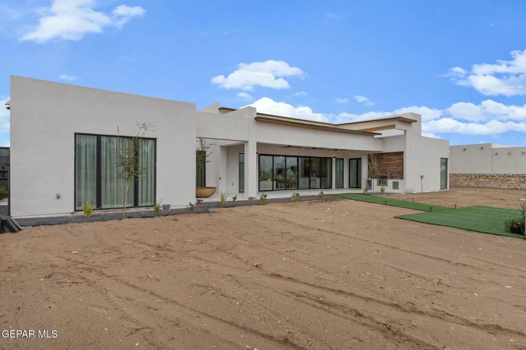 Experience elevated living in this Parade of Homes luxury residence on 0.62 acres in El Paso. This 4 bedroom, 5 bathroom estate offers a refined layout designed for both comfort and entertaining. The welcoming Galarza stone facade creates a striking first impression, complemented by exceptional craftsmanship throughout. Interior highlights include a private office, tranquil zen room, and a versatile flex space with wet bar. The gourmet kitchen features marble countertops, premium finishes, and seamless flow into the main living areas. A custom wine display adds a sophisticated focal point. The primary suite is a true retreat with a handcrafted travertine soaking tub and spa inspired bath. Expansive windows fill the home with natural light. Additional features include a water softener and a paid off commercial grade solar panel system for energy efficiency and long term savings.