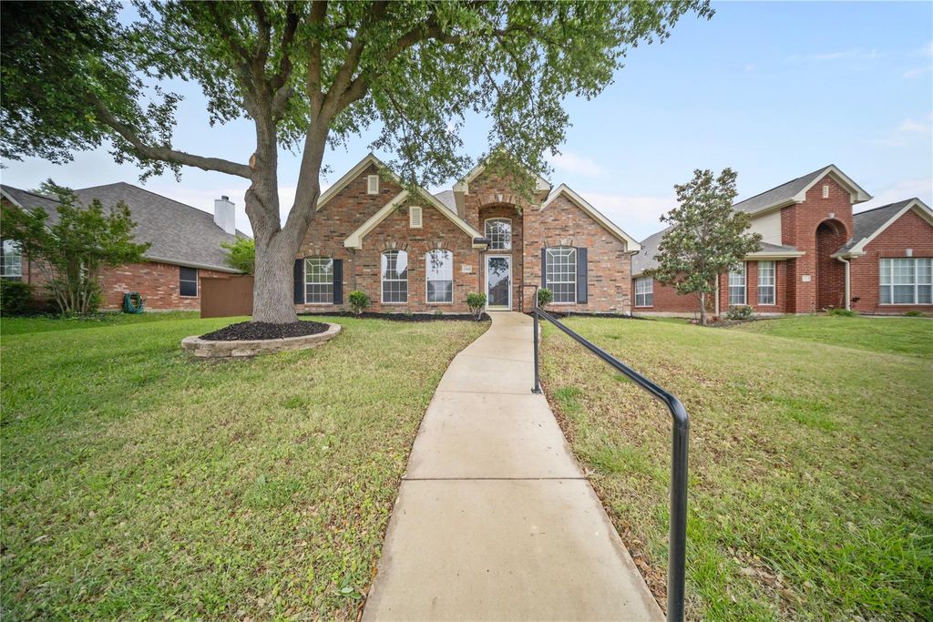 Beautifully maintained, updated and pre-inspected 3-bedroom, 2-bath single-story home located in the Estates at Russell Creek community of Plano. Offering 1,811 square feet, this home features a functional and open layout with a spacious living area highlighted by a brick gas fireplace with updated glass doors, hardwood flooring and tile throughout the main living areas, and a well-appointed kitchen with granite countertops, refinished white cabinetry, updated hardware, stainless steel appliances and sink, and a 5-burner gas stove. Thoughtful updates throughout, including fresh interior and exterior paint completed in 2026, provide a move-in ready experience. Major improvements include a Class 3 impact-resistant Atlas Pinnacle Pristine roof with gutters replaced in 2024, offering a lifetime limited warranty and potential insurance savings, along with a water heater replaced in 2024 and garbage disposal replaced in 2026. Additional enhancements include updated lighting in the formal dining and bathrooms, new ceiling fan in the family room, all new bathroom faucets and shower fixtures, and a refinished primary bathroom vanity and tub. The backyard offers a covered patio with arbor and a repainted privacy fence, ideal for outdoor enjoyment. The split bedroom design provides added privacy, with a well-sized primary suite and generously sized secondary bedrooms. Ideally positioned near Independence Parkway, Russell Creek Park, and nearby greenbelt trails, with convenient access to shopping, grocery, and dining options, as well as major thoroughfares including Sam Rayburn Tollway (HWY 121) and Dallas North Tollway for easy commuting. Zoned to Plano ISD schools, including Andrews Elementary, Rice Middle School, and Plano West Senior High School.