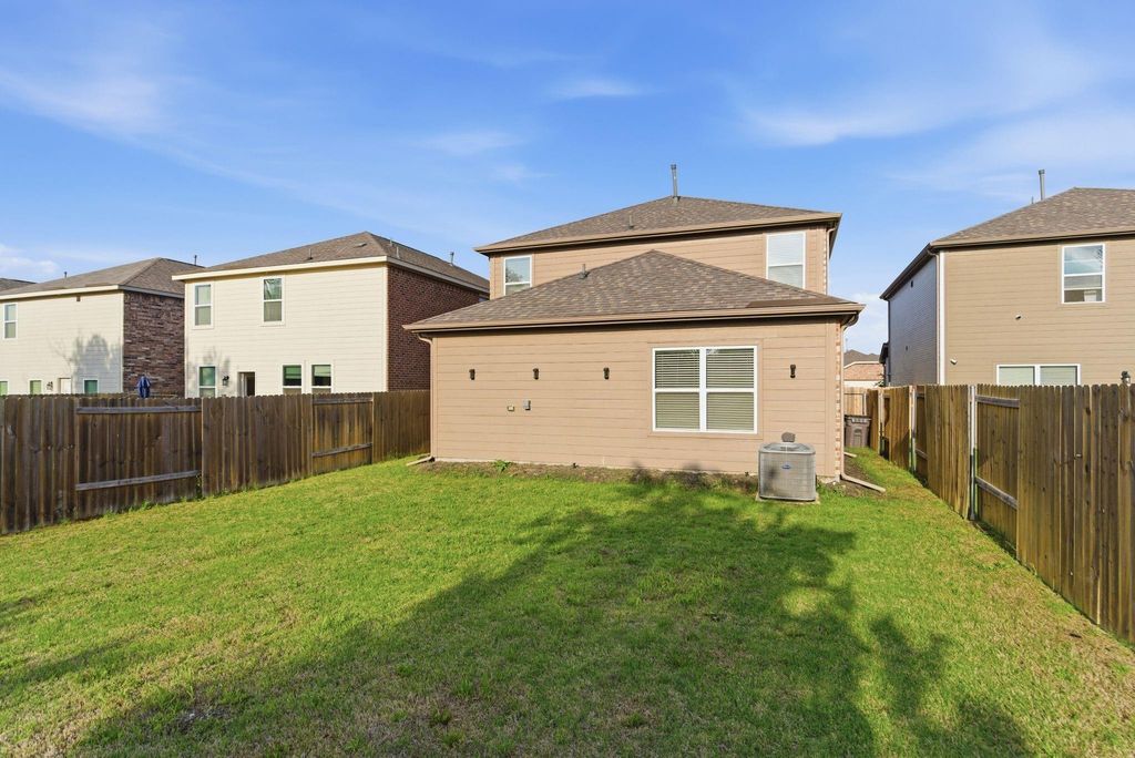 Five bedrooms and a massive game room. LVP flooring downstairs. Kitchen has granite, gas stove, white shaker cabinets, black hardware, stainless steel kitchen appliances. Crown molding detail, 2” faux-wood blinds on all operable windows, a Wi-Fi-enabled garage door opener, a fully fenced backyard and more! Refrigerator, washer and dryer are included.
