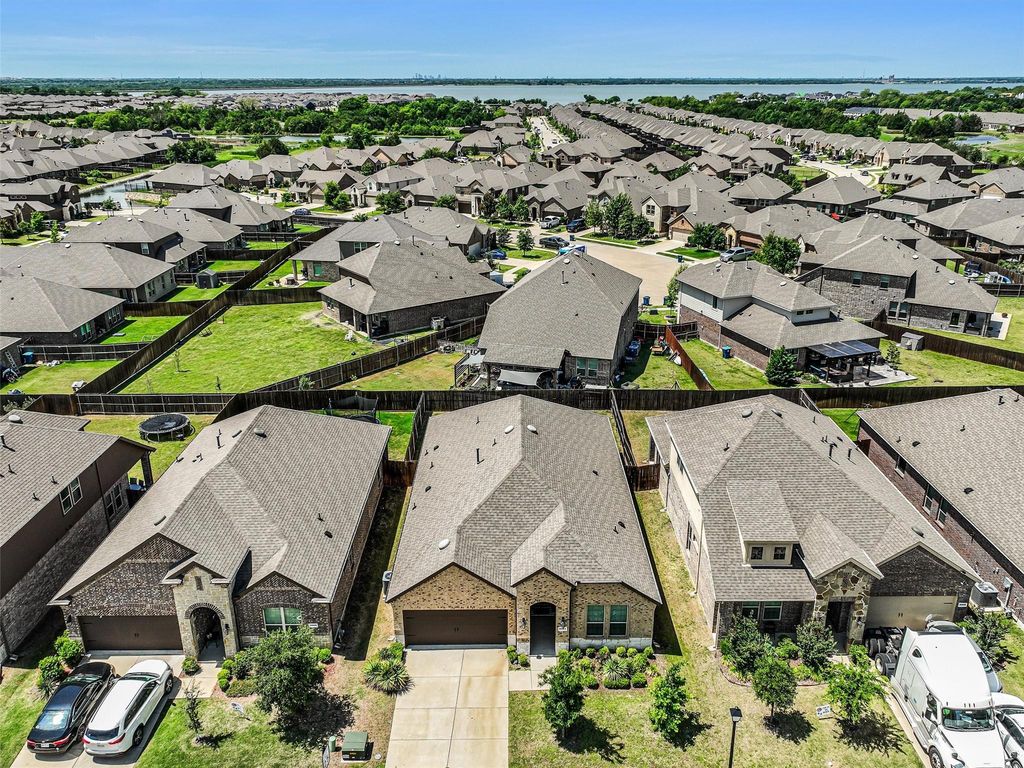 Welcome to this beautifully maintained 2021-built home in the highly sought-after Lakeside at Heath community, zoned to top-rated Rockwall ISD and just a short walk to Linda Lyon Elementary. Nestled in a quiet, serene neighborhood, this property offers a rare combination of modern comfort and a peaceful, nature-filled setting. Situated on a desirable oversized lot, this single-story home features 4 bedrooms and 3 full baths with an open, airy layout and soaring 10-foot ceilings. Wood-look tile flooring flows throughout the main living areas, enhancing both style and durability. The heart of the home is the gourmet kitchen, seamlessly connected to the living and dining spaces—perfect for everyday living and entertaining. It features quartz countertops, a stylish tile backsplash, gas cooktop, built-in ovens, stainless steel appliances, and a large island with sink and breakfast bar. Abundant natural light in the expansive living and dining areas. The spacious primary suite offers a relaxing retreat with a spa-inspired bath, dual sinks, and a glass-enclosed shower. What truly sets this home apart is its proximity to Lake Ray Hubbard and the scenic community lakes, offering beautiful water views and a calm, tranquil environment. Just minutes away (approximately 0.5 mile), you can enjoy boating, sailing, lakeside walks, and breathtaking sunsets. The neighborhood itself is known for its peaceful atmosphere and picturesque surroundings, making it an ideal escape from the city while still staying conveniently connected. Additional features include a tankless water heater and full rain gutters. With easy access to Highway 80 and nearby shopping and dining, this home truly offers the best of both convenience and lifestyle. A rare opportunity to enjoy lakeside living in a calm, welcoming community—this is one you don’t want to miss.