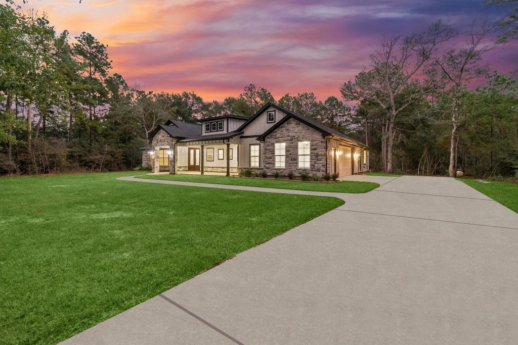 Discover this brand new luxury home on 2 acres, located in Saddle Creek Forest. A Gated Community with many amenities: basketball, volleyball & tennis courts, pool, lake, riding trails & arena! Set back from the road for ultimate privacy, this home boasts large, picturesque windows that provide abundant natural light. The kitchen is a chefs dream with stunning granite, custom built cabinets, farmhouse sink, stainless steel appliances, 5 burner gas cooktop, walk-in pantry, & a large island overlooking the living room. Beautiful luxury vinyl plank flooring that is waterproof making cleaning a breeze! Impressive master suite, very spacious, with a luxurious spa-like bathroom & fantastic closet! The 2 spare bedrooms share a Jack & Jill bathroom. Formal office (could make a 4th room), grand foyer, formal dining, large covered patios, oversized two car garage, laundry & mud room! Low taxes! High & Dry! Great location! 10 miles to Magnolia, 50 miles to Houston, 42 miles to College Station!