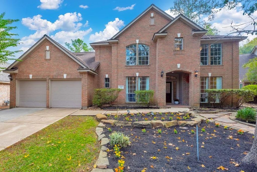 Welcome to this beautiful maintained two-story home on a quiet cul-de-sac in Alden Bridge. Classic brick exterior with mature trees and welcoming curb appeal. Inside an open and flowing layout connects living, dining, and kitchen areas, perfect for everyday comfort and entertaining. Primary Suite on the main floor offers access to the backyard and includes a versatile bonus room ideal for an office, nursery, gym, or sitting area. Upstairs features three bedrooms, two full baths, and a large game room that provides flexible living space for family and guests. Natural light and updated finishes throughout. The backyard is a private retreat with a covered patio, outdoor kitchen, fireplace, TV and spa/hot tub. The equipment used for the spa could also be used for a pool in the future. Walking distance to exemplary schools and low tax rate make this home an outstanding value in The Woodlands.