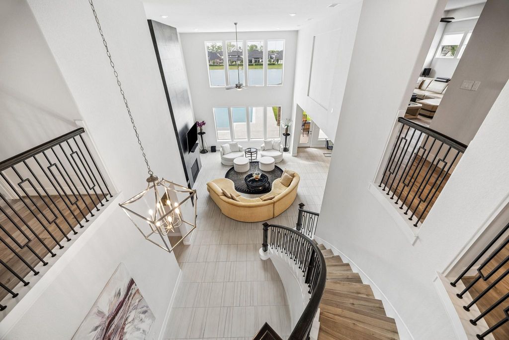 Stunning lakefront 2-story home on an 80’ waterfront lot in the exclusive Sawmill Lake section of Sienna. This elegant residence showcases a spacious, thoughtfully designed floor plan with 5 beds & 4.5 baths, including 2 bedrooms on the first floor—ideal for guests or multigenerational living. A grand foyer with soaring ceilings and breathtaking lake views creates a dramatic first impression, drawing you into the living room’s striking two-story wall of windows that fills the space with natural light. Upstairs offers unique highlights, including an oversized game room, generously sized secondary bedrooms with ensuite baths, and a charming hidden room tucked behind a bookcase. Enjoy outdoor living with a covered patio, a resort style Pebble Tec pool, expansive green space, and tranquil waterfront views-perfect for relaxing or entertaining. Zoned to Fort Bend ISD and located in a highly sought-after master planned community with exceptional amenities. Shows better than new construction!