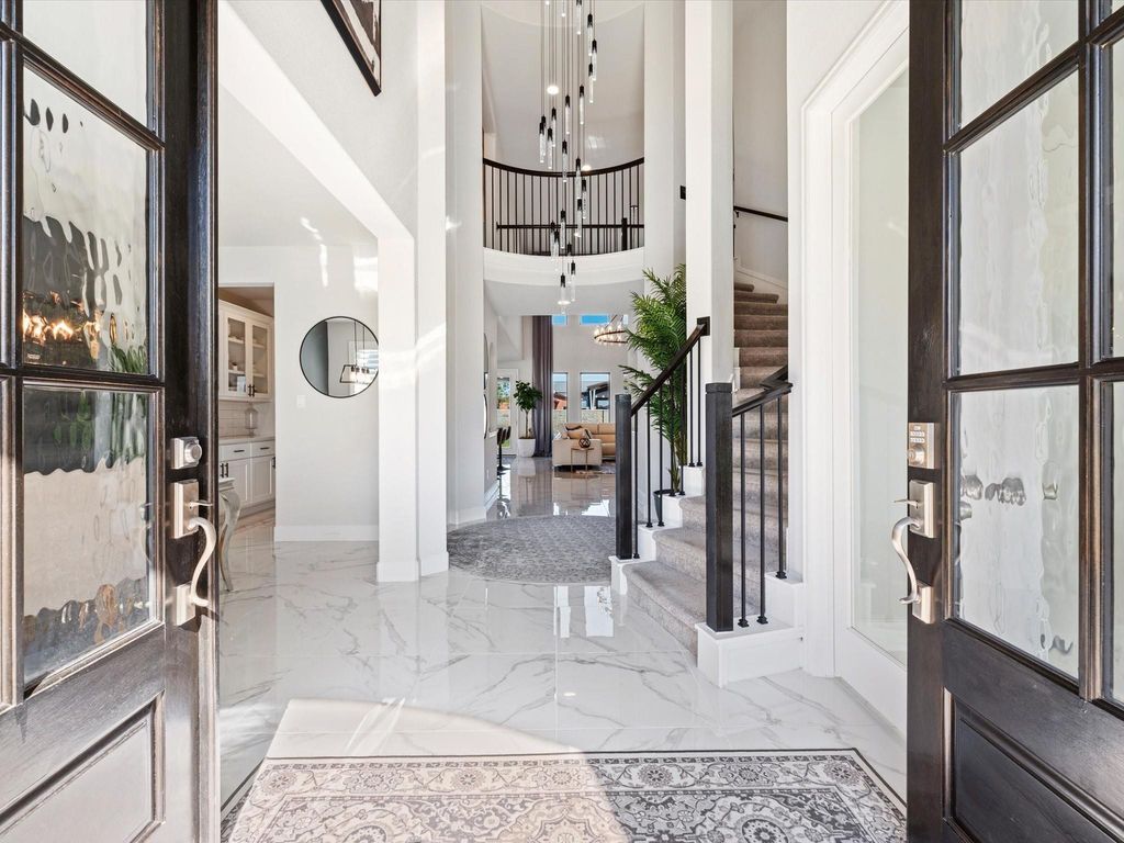 Welcome to 3114 Rockcress Ln in Jordan Ranch, one of Fulshear’s most desirable master-planned communities. Built in 2024, this nearly new Perry Home offers just over 3,900 sq ft on a 9,200+ sq ft lot, blending space, style, and function. A grand two-story entry with sweeping curved staircase sets the tone, framed by a private office with French doors and formal dining. The light-filled two-story family room with a wall of windows opens to the kitchen and breakfast area, featuring an island with seating, walk-in pantry, and Butler’s pantry. The first-floor primary suite boasts a 12-ft ceiling, wall of windows, dual vanities, soaking tub, separate glass-enclosed shower, and two walk-in closets. A secondary bedroom and full bath are also downstairs. Upstairs offers a game room, media room, Hollywood bath, and additional bedrooms. All complemented by a 3-car tandem garage, mud room, covered patio, whole house water filtration system, and a top-rated elementary just a short walk away.