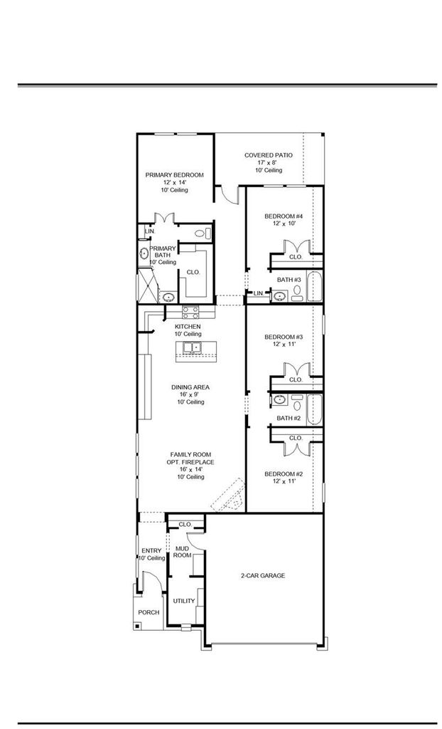 READY FOR MOVE-IN! Entry leads to open family room, dining area and kitchen. Large windows and 10-foot ceilings throughout. Kitchen features generous counter space, 5-burner gas cooktop, corner walk-in pantry and large island with built-in seating space. Primary suite includes bedroom with 10-foot ceiling. Double doors lead to primary bath with dual vanities, separate glass-enclosed shower and walk-in closet. Covered backyard patio. Mud room with adjoining closet is just off two-car garage.