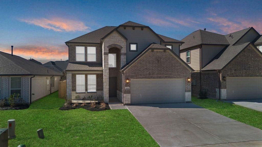 Step into this stunning new construction home offering 4 bedrooms, 3.5 bathrooms, and 2,872 sq ft of thoughtfully designed living space. The striking brick and stone elevation with 3-sided clay brick creates timeless curb appeal. Inside, enjoy wood-look tile flooring throughout the main living areas, a private study with elegant French doors, and a spacious living room with soaring 2-story ceilings. The open layout is perfect for entertaining, while the covered rear patio invites relaxing evenings outdoors. The primary suite features a luxurious en-suite bath, and spray foam insulation ensures energy efficiency year-round. A 2-car garage adds convenience to this exceptional two-story design. Located in a desirable community with a low tax rate, just minutes from The Woodlands, with a new amenity center opening soon.