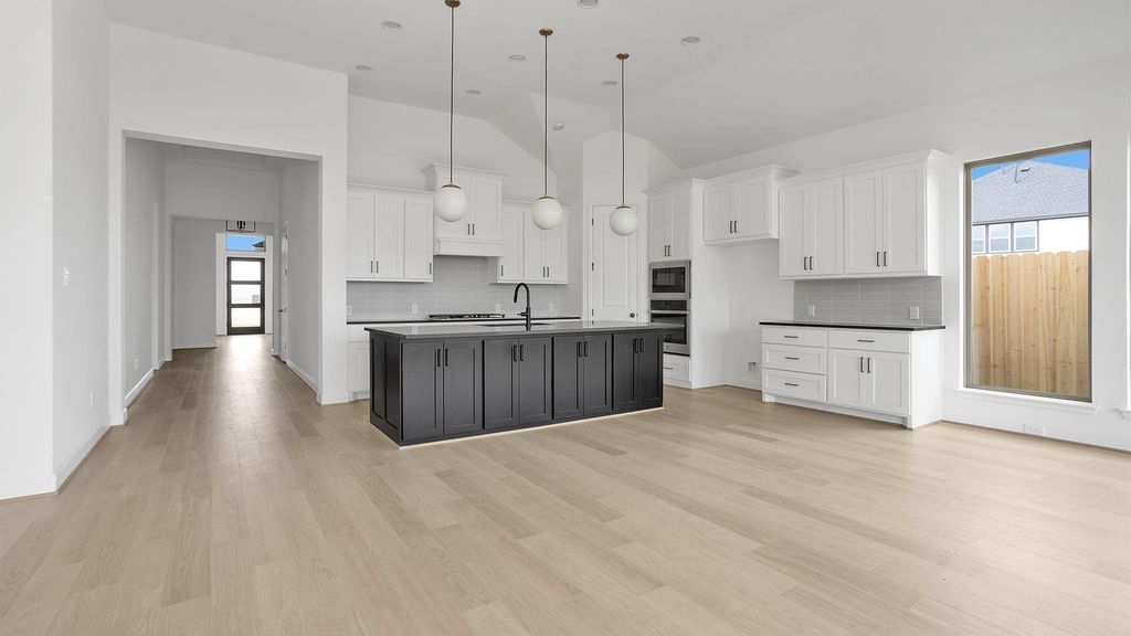 READY FOR MOVE IN!! Welcoming porch extends to entry with home office at entry. Open family room with 12-foot ceiling and a large wall of windows. Dining area offers generous natural lighting with wall of windows. Island kitchen with built-in seating space, a 5-burner gas cooktop, and a corner walk-in pantry. Private primary suite features bedroom, double door entry to primary bathroom, dual vanities, a freestanding tub, separate glass enclosed shower and two walk-in closets. Secondary bedrooms with walk-in closets, a utility room and a Hollywood bathroom complete this spacious design. Extended covered backyard patio. Mud room just off the three-car garage.