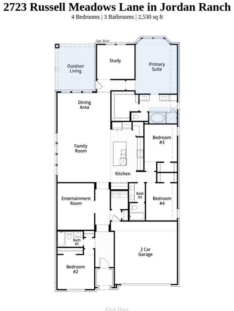 This stunning home boasts an open concept floorplan with 11ft ceilings and ample natural light. After working in your private study in the back of your home, relax with a movie or catch the big game in your Entertainment Room. Guest bedroom and bathroom near the front for maximum privacy. Enjoy the livability and superior quality of your home built by Highland - wood-look floors throughout main areas of home, quartz countertops, Frigidaire appliances, tankless water heater, Energy Star certified, and more.. Close access to I-10, near 99 -Highly rated schools, including onsite Elementary. Future shopping and a brand-new H-E-B in the heart of the community. Come see what the good life is all about in Jordan Ranch!