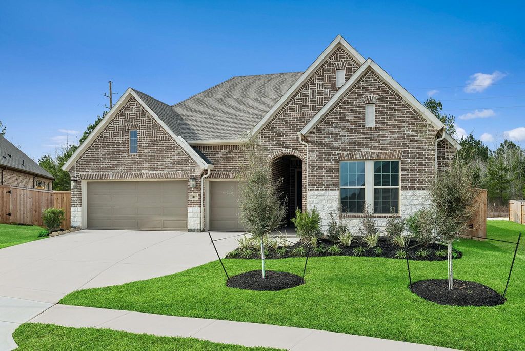 Welcome to the dynamic comforts and bold luxuries of The Ridgegate by David Weekley floor plan with 4 bedrooms and 3 full baths, plus a 3-car garage. Your gourmet kitchen includes a corner pantry and a gathering-place quartz island which overlooks the family living space. Open-concept living spaces fill with gentle sunlight and your inspired design style. Bring your dreams of a home office, art studio, or family movie theater to life in the versatile open study. Your oversized Owner’s Retreat provides an ideal space to begin and end every day in luxury, with a spa-like super shower with designer tile, double sinks and walk-in closet. Each spare bedroom and the secluded guest suite provides an exceptional place to grow. Enjoy surrounding nature with tall trees and no back neighbors in Magnolia's Escondido. Enormous covered back patio is pre-plumbed for an outdoor kitchen and fireplace. Room for a pool!