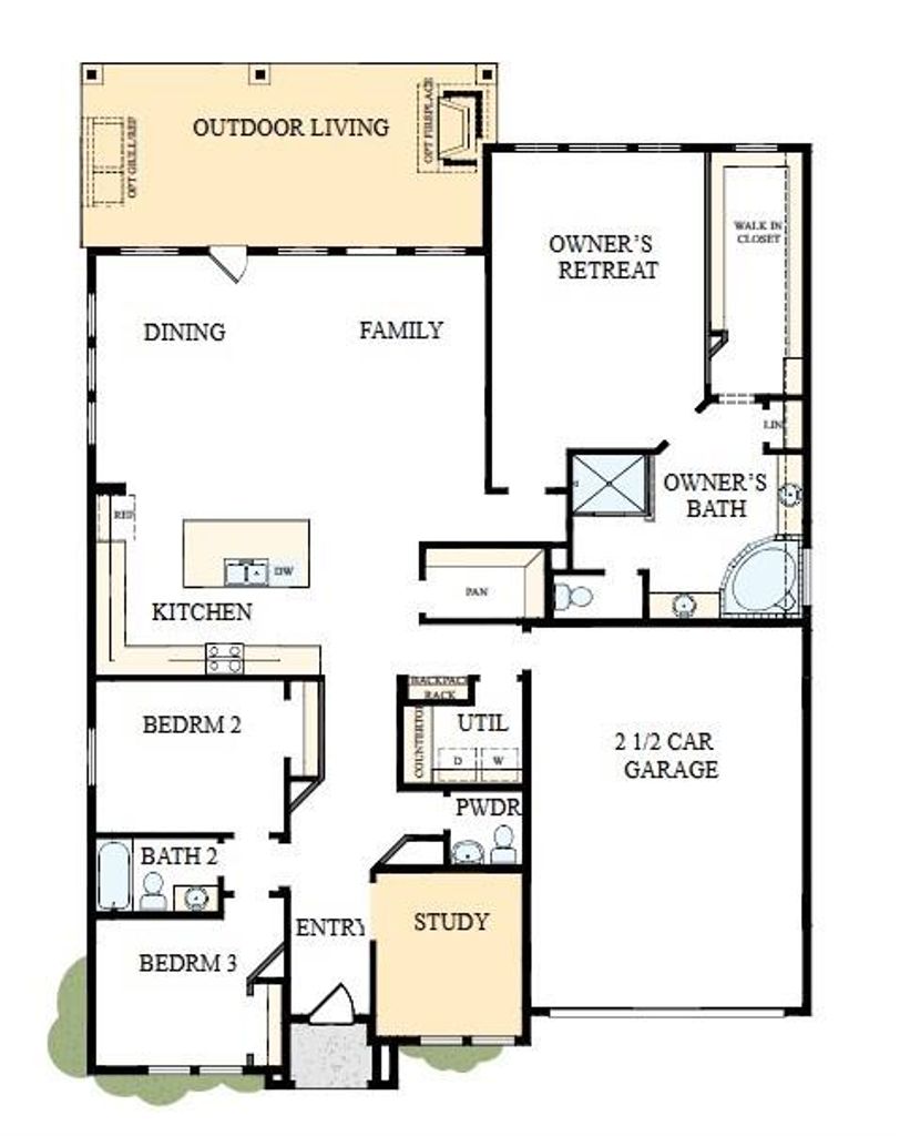 Explore the superb style and airy flow of this stunning 1-story plan by David Weekley Homes. The spacious and inviting feel of the oversized entertaining areas are absolutely perfect for the entertainer. With a lovely private study and charming powder bath, this home offers impeccable design and flexibility without any wasted space. Top notch interior design elements are sure to amaze as you wander through the home on your way to the super-sized outdoor living complete with outdoor fireplace. Schedule your appointment to see your new David Weekley Home today! And don't forget to ask about our guaranteed heating and cooling usage for three years with our Environments for Living program!