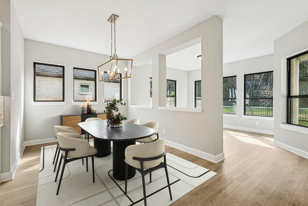 Welcome to The Leeward, a thoughtfully designed single-story residence offering approximately 3,300 square feet of refined living in the heart of Artavia. This elegant home blends spacious comfort w/ elevated design, perfect for both everyday living & entertaining. Featuring 4 generously sized bedrooms & 3.5 beautifully appointed baths, the layout provides privacy and flexibility for family and guests alike. The expansive chef’s kitchen is the centerpiece of the home, showcasing premium finishes, abundant counter space, and a seamless connection to the main living areas—ideal for hosting gatherings or enjoying quiet evenings at home. A light-filled sun room extends the living space, creating a serene retreat for relaxation or casual entertaining while enjoying views of the outdoors. The impressive 4-car garage provides ample space for vehicles, storage, and hobbies. Situated on a premium homesite with no back neighbors, The Leeward offers exceptional privacy and peaceful surroundings.