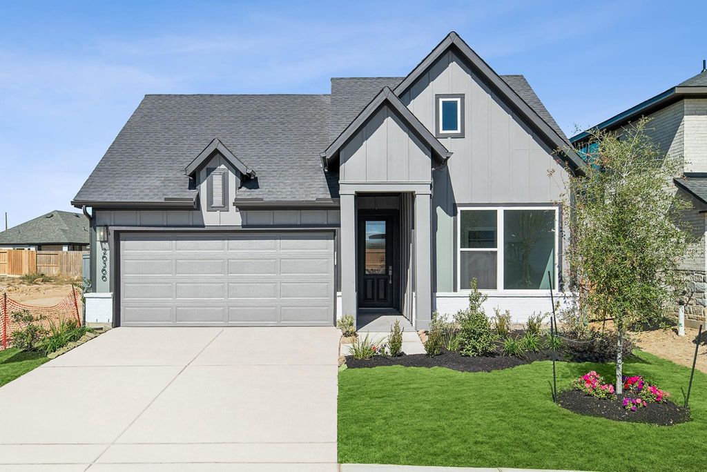 The Midnight Glow showcases the Genoa in Jubilee, our best-selling one-story plan with a striking dark exterior and a bright, light-filled interior. Soaring 12-foot ceilings and abundant windows highlight one of the most spacious kitchen, dining, and family room layouts available on 45-foot homesites. The modern kitchen is ideal for entertaining with quartz countertops, ample cabinetry, and an oversized 9-foot island with seating. Glass French doors open to a flexible study, perfect for a home office or media space. A front bedroom with en suite bath offers a private guest retreat, while two secondary bedrooms are positioned mid-home for added privacy, with closets between them to eliminate shared walls. The Owner’s Retreat features direct access to a covered patio overlooking one of the largest backyards available for this plan. The Owner’s bath includes a large drop-in tub and separate walk-in shower. Walking distance to wellness zones and Jubilee’s largest lake with scenic trail.
