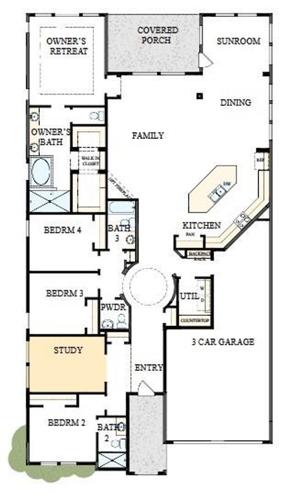 Welcome to the beautiful community of Grand Central Park and our newest floor plan, the Begonia. This open design welcomes you in with its large living area with big windows, high ceilings and low maintenance vinyl plank floors, overlooking a covered rear patio and fully fenced/sodded rear yard and whole home gutters! You will enjoy cooking and entertaining friends and family in the huge Kitchen with stacked cabinetry, double ovens with 36 in gas cooktop with updraft venthood and custom cabinet built ins. Light and Bright ensuite and two secondary bedrooms with shared bath. Private study and a sitting area for quaint conversations or morning coffee. The Owner's Retreat bath features an oversized walk in shower as well as a soaking tub, his and her closet and bench seat for convenience. The private study can be used as a playroom or TV room.