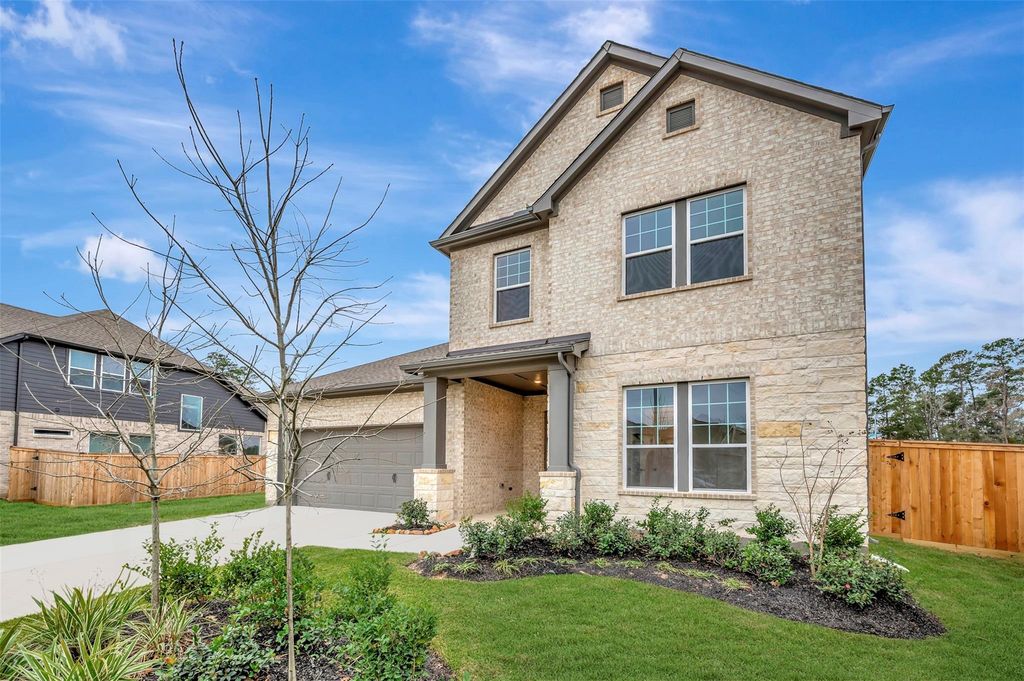 The Ella: a well-appointed, energy-efficient home in desirable Grand Central Park! This two-story sits on an oversized home site, no rear neighbor for privacy. A thoughtfully designed layout with a main-level Owner’s Retreat and guest suite, plus two oversized secondary bedrooms upstairs. Soaring ceilings, private study, media room for movie nights, plus a game room for family fun. An extended outdoor living area for indoor-outdoor living. The kitchen is a chef’s dream, featuring GE Profile appliances, double ovens, and quartz countertops. Custom Cabinetry to the ceiling, delivering abundant storage space. Durable wood-look flooring, 8' solid core interior doors, and oversized baseboards that elevate every room. David Weekley Homes is a leader in energy efficiency, with conditioned attics, 2x6 framing, are just a few of the advanced efficiencies to help you live more comfortably and sustainably.