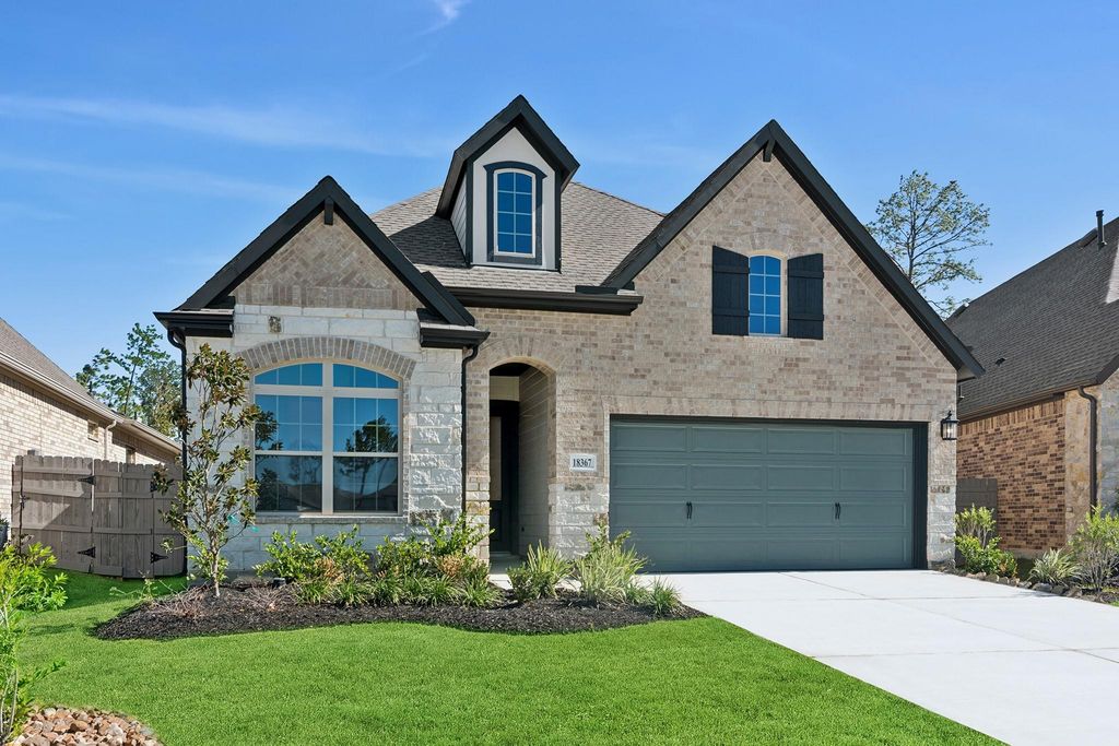 Move-In Ready! The Manhattan is a stunning new construction David Weekley Home in Artavia, offering added privacy with no back neighbors. This open concept 4 bedrooms, 3 bathrooms, single-story design with a study, provides ample space for both relaxation and productivity. The home features a spacious gourmet kitchen, with a 9' island perfect for entertaining. The family room has impressive 12-foot ceilings, making the space feel open and airy, while the owner's bedroom features a stunning cathedral ceiling, adding elegance and height. Enjoy the blend of modern design and comfortable living in a serene, expansive setting. Call or chat with the David Weekley Homes at ARTAVIA Team to learn about the stylish design selections of this new home for sale in Conroe, Texas.