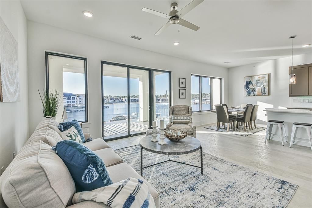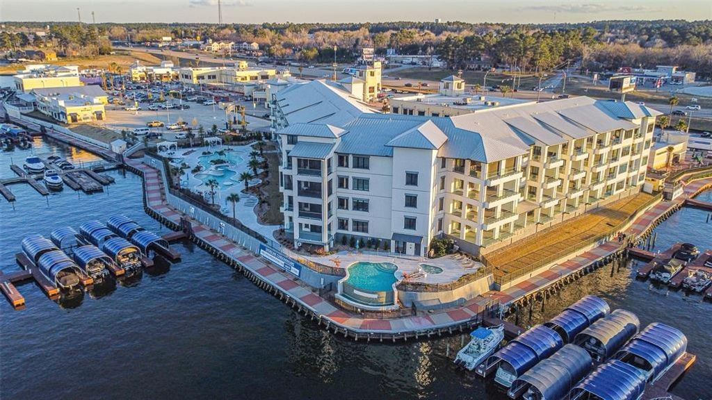 Beautiful lakefront 2 bedroom, 2 bath condo on Lake Conroe! Premier luxury mid-rise condominium at Shoreline Condominiums. Breathtaking views inside and out! Resort-style amenities including gated entry, two elevators, storage units, private covered parking garage, EV charging stations, two pools, hot tub, fire pits, grilling stations, and much more! Private balcony with glass railing. Condo features an open floor plan with floor to ceiling sliding glass doors that lead to a 205 sf balcony. Primary bath has large walk-in closet and double sinks. Kitchen features quartz countertops, stainless appliances, modern fixtures, etc. Washer and dryer included. Condo is fully furnished. Book an appointment today to see this incredible property!