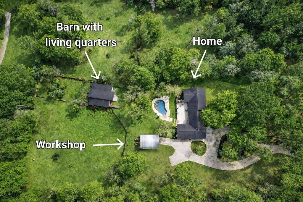 Welcome to 2004 Northshore Drive in Lake Forest Falls, one of Conroe’s hidden gems. This private 4+ acre ranch-style property backs 200+ acres of undeveloped land, offering incredible privacy and peaceful views. Inside, the updated open-concept home features a spacious living area and large kitchen with granite countertops, tile floors, and a walk-in pantry, plus updated bathrooms and mudroom. Recent upgrades include new roofs on the home and barn and a generator. Step outside to your private backyard retreat with a stone patio, outdoor fireplace, and saltwater PebbleTec pool with spa and waterfall. The property also includes a 6-stall barn, chicken coop, full fencing, and a one-bedroom apartment above the barn. Additional features include an oversized two-car garage with epoxy floors and a 26x36 workshop. Enjoy private access to the 80+ acre community lake with boat launch, swim island, and parks.