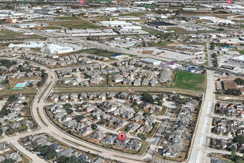 Discover comfort and style in this large stunning Stafford home in the highly desired community of Promenade! This spacious rental has NO carpet, fresh two-tone paint, high ceilings, and beautiful tile flooring in all common areas. Enjoy a bright, airy feel throughout thanks to abundant windows and natural light. The upstairs features a huge game room with a convenient Jack-and-Jill bathroom. The kitchen features granite countertops, a large walk-in pantry, and a secondary pantry. All appliances included. Relax in the luxurious primary suite with his-and-her sinks, garden tub, separate shower, and a massive walk-in closet. Each bedroom has its own walk-in closet, and there's a large powder room downstairs. Other highlights: full-shelved garage, fans in every room, pre-wired alarm, and a beautifully maintained backyard. Don’t miss this move-in-ready gem—schedule your tour today!