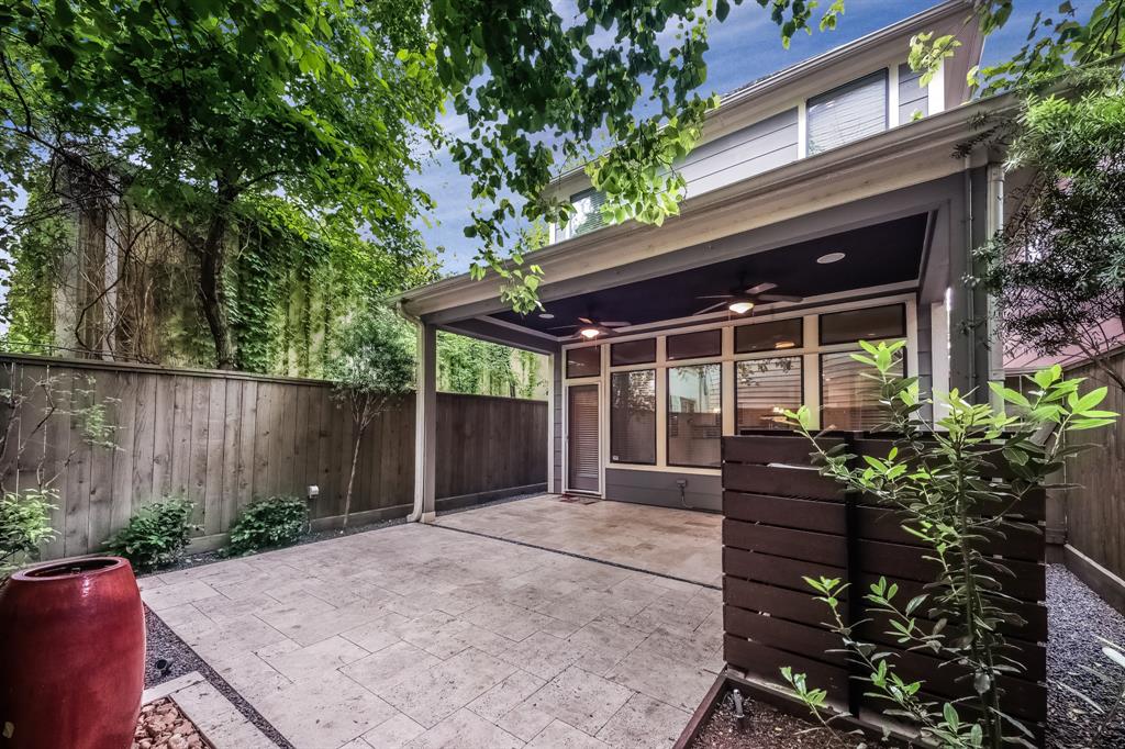 This home features 3 bedrooms, 2.5 baths with a fully landscaped backyard/patio area with outdoor speakers and a water fountain. The ground floor features high ceilings with an open-plan living concept. The kitchen boasts high-end Bosch stainless steel appliances and a wine chiller with granite countertops and travertine backsplash. The living room has an in-ceiling theater speaker system. The Master Suite is spacious with a custom tray ceiling. The home is draped with solid oak floors throughout, accompanied with travertine floor tiles. Centrally located and close to I-10 and I-610 with easy access to downtown. Parking is easy with a private double-wide. driveway and street parking. This location offers plenty of walkability with proximity to the hike and bike trail, fitness studios, breweries, bars, and restaurants. This home is an excellent choice for urban professionals. Come and enjoy city living at its finest!