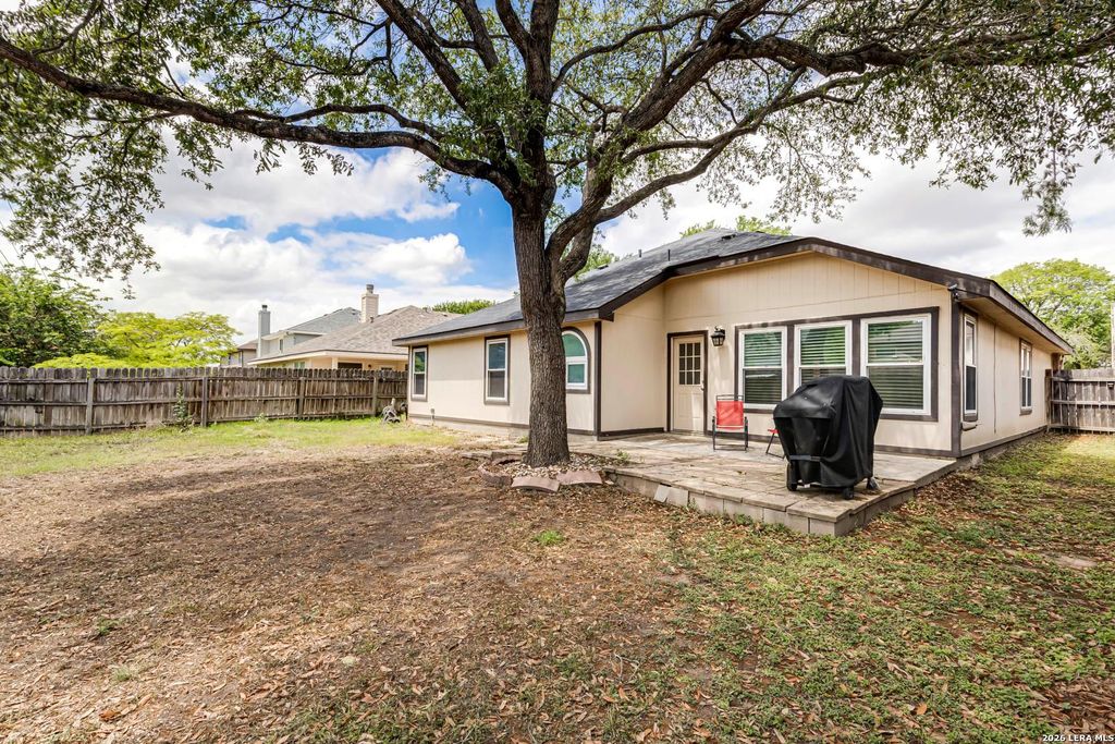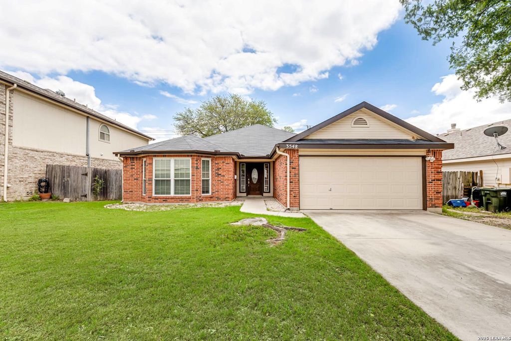 This 3-bedroom, 2-bath home in Carolina Crossing has a functional, open layout. Wood-look flooring runs through the main living areas. The living room connects to a formal dining space, offering flexibility for everyday living or entertaining. The kitchen features granite countertops, stainless steel appliances, two-tone cabinetry, a pantry, and a bay-window breakfast area. The primary suite includes a private bath with a soaking tub, separate shower, and walk-in closet. Secondary bedrooms are well-sized. Fenced backyard with patio and mature trees for shade. Convenient location near schools, parks, shopping, dining, and quick access to I-35.