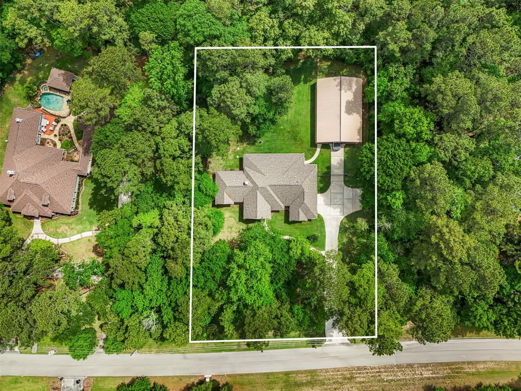 Surrounded by trees, this 2-acre property comes with a 3 bed/2.5 bath house as well as a 40'x45' workshop with a carport. The spacious Primary Suite has a large walk-in shower, spa tub, and huge closet. Both secondary bedrooms have two sets of double door closets for plenty of storage. The kitchen has granite counters and a large island that is open to the living room. The study with French doors is great for working at home. A flex room can be used as a game room, playroom or extra sitting area and comes with a large storage closet. The back patio extends across the back of the home with room for multiple sitting areas. Full house generator and new roof July '21. Enjoy the quiet and peaceful lot with nature galore! Sit back and relax and watch the deer cross through. Indigo Ranch is a gated neighborhood and offers a community park. Schedule your private showing today. Items that don't convey: Flag pole, work benches in the shop, and the Tv mount in the living room.