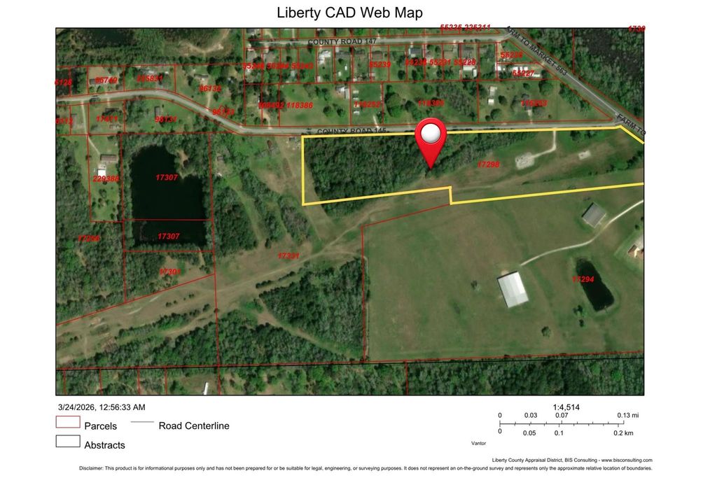 Discover the potential of this unrestricted 13-acre wooded tract at 41 County Road 145 in Liberty, TX. Featuring road frontage and convenient access, this property is covered with native hardwoods and offers a peaceful setting ideal for hunting, recreation, livestock, agriculture, or building your future home or weekend retreat. No HOA and no deed restrictions give you the freedom to create your vision. An existing pipeline runs through the property, providing additional open space. Utilities are not currently on site...buyer to verify availability of electricity; a water well and septic system will be needed. Survey not available. Enjoy country living with space and privacy.