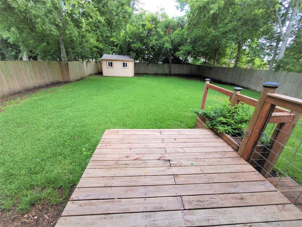 Great location, one minutes to get on 288 and close to major retail stores and restaurants. Beautiful hard wood flooring welcomes you into one of two separate living areas. It is well maintained 3 bedroom, 1 bathroom home with many updates throughout. Beautiful decks on both front and back. Additional storage is conveniently located in your private storage building in the back yard.