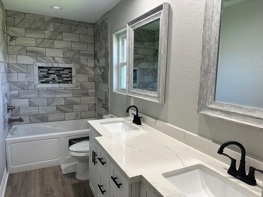 This inviting 4-bedroom, 2.5-bath home offers comfort, convenience, and thoughtful design throughout. Enjoy two spacious primary bedrooms, each featuring its own full bathroom—one with a walk-in shower and the other with both a tub, shower, and double sinks. The kitchen is beautifully appointed with granite countertops and comes fully equipped with a refrigerator, dishwasher, microwave, and electric stove. Its open layout overlooks the bright and spacious living area. Step outside to a fenced-in backyard complete with a covered patio, offering a private outdoor retreat for relaxing or grilling. Trash service is included in monthly rent. Schedule your showing today!