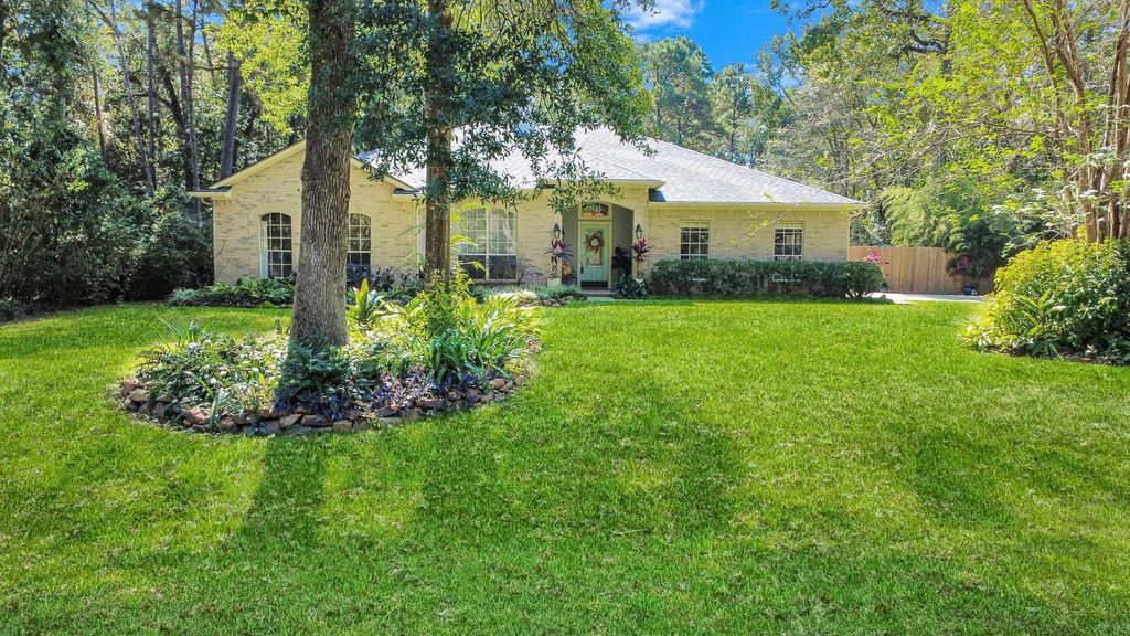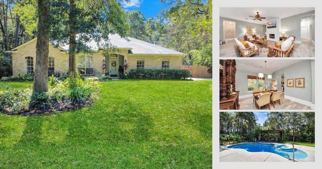 Peaceful Country Living Minutes from Town! Nestled on 1.5 acres in the gated Chasewood community, this stunning 3-bed, 2-bath with a 2-car garage and office offers the perfect blend of privacy & convenience. Backyard is an entertainer’s dream, featuring a sparkling pool, redwood pergola, screened-in porch, storage shed, bird aviary, & extra-wide gate w/carport access—perfect for RVs & boats. Kitchen boasts quartz countertops, marble tile backsplash, gas cooktop, ss appliances, & breakfast bar w/seating. Primary suite includes a beautifully remodeled en-suite w/double sinks, jetted tub, tiled shower, & large closet. Guests will enjoy oversized secondary bedrooms, a formal dining, sunny breakfast area overlooking backyard, a shiplap gas log fireplace, 12" baseboards, & durable ceramic wood-look tile throughout! Brand-new roof (Oct 2025), no MUD tax, low property tax, & in highly-rated CISD. Near I-45, Lake Conroe, shopping, dining, & many entertainment options! See it before it is go