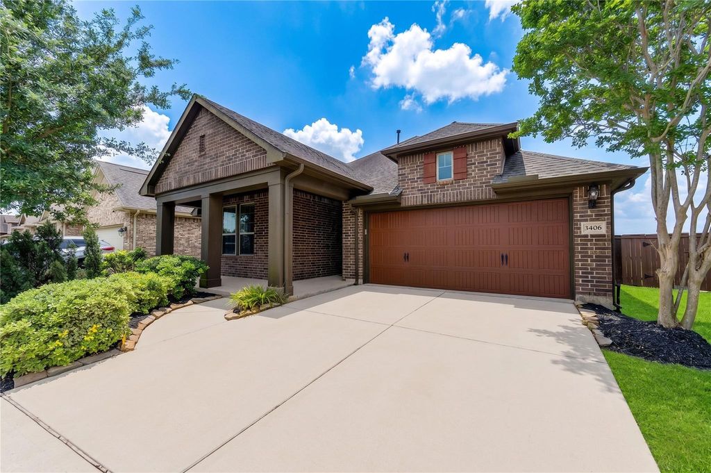 Beautifully designed all-brick, single-story David Weekley Homes home featuring 3 bedrooms, 2 baths, and a thoughtfully crafted open floor plan with split bedrooms for added privacy. Seamless flow between the living, dining, and kitchen areas makes this home ideal for both everyday living and entertaining. A versatile flex room offers the perfect space for a home office, playroom, or additional living area. The modern kitchen features stainless steel appliances, granite countertops, and an oversized island that anchors the space. Additional highlights include a 2-car garage with extra storage, a dedicated mud area, and a spacious laundry room with a folding counter and hanging space. Enjoy a covered front porch and a covered back patio with no back neighbors, offering privacy and beautiful sunset views. The oversized backyard provides endless potential to create your own outdoor retreat. FULL-HOUSE GENERATOR adds an extra layer of comfort and peace of mind.