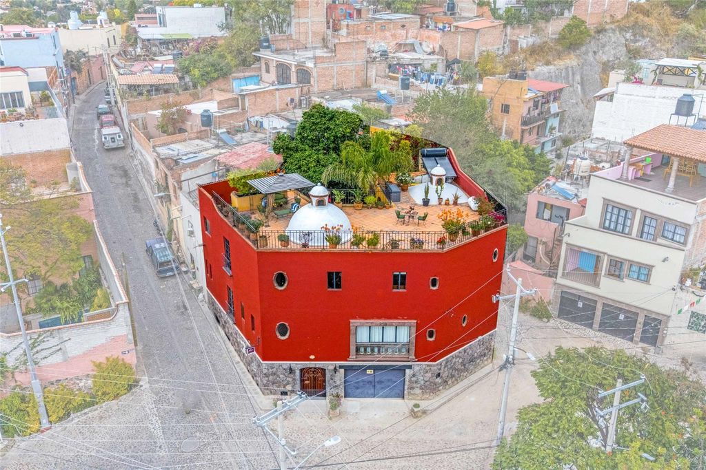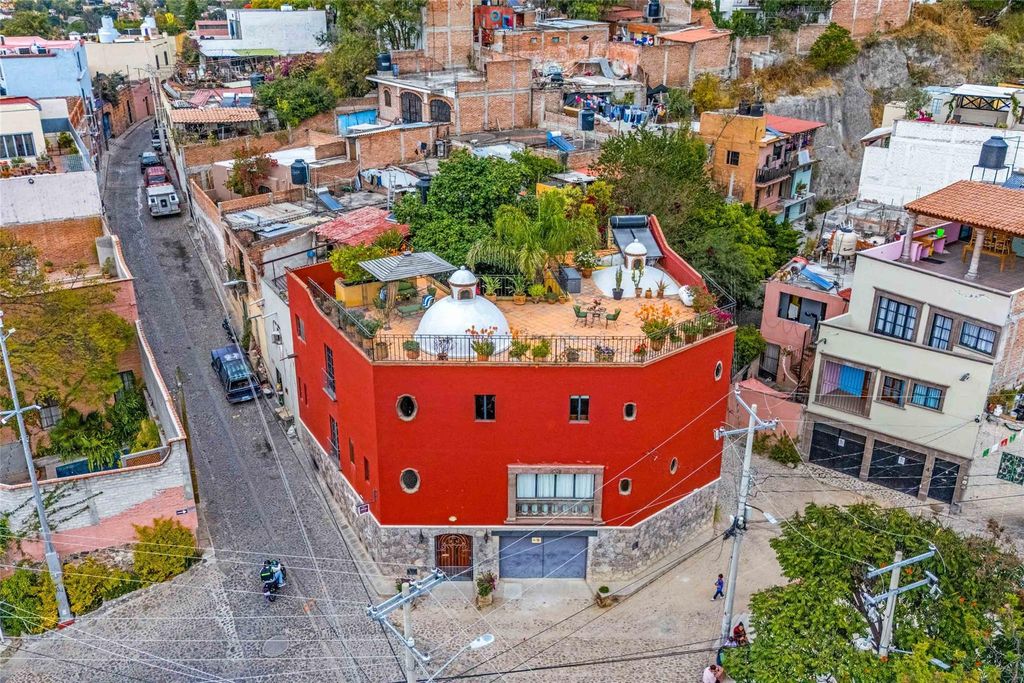 Located walking distance to the Jardin, this remodeled home offers all the expected amenities: five mini-splits,solar water pre-heat system, electronic Dicalsafire decalcifier, and easy-access oversized electric-door garage. Bring your bird-spotting glasses to tour this home, the courtyard will enchant you at first visit with its botanical environment just begging for your tropical hammock…the Tiki Bar is optional! et’s talk about value! Located the length of a Cadillac off Guadiana’s Prolongacion de Aldama, the corner-lot Casa Caracol Rojo—watch for the big snail stone sculpture above the courtyard fountain!—offers two full homes in one, with an additional kitchenette casita suite. This home’s lower level includes the kitchenette casita suite and a separate apartment home—with abundant south-facing light—offering a full living/dining/kitchen with half bath and two en suite bedrooms, leaving the upper-level primary residence entirely private with maximized light, sun and views.