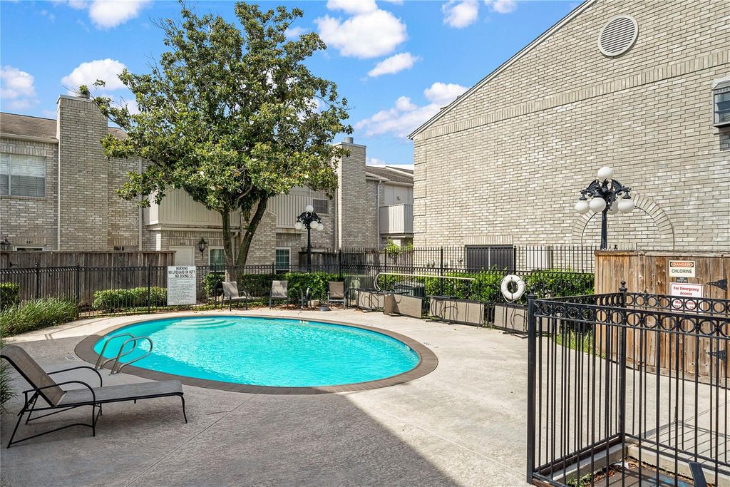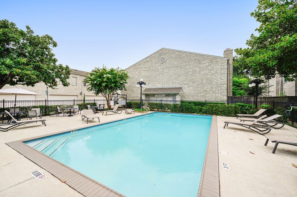 GREAT LOCATION!!! Easy access to Westpark, Beltway 8, and City Centre! NEVER FLOODED! Recent HVAC unit May 2025.This unique and well-maintained 2-story unit features 2 oversized owner retreats.Primary Closet updated with shelving for storage .The primary suite has its own private balcony. You can make it your own getaway. Both rooms have huge walk-in closets. Two full baths and one half bath downstairs. Recently installed laminate floors in both bedrooms and up the stairs. Freshly painted! Two-car garage with remotes. The grounds are immaculate!!!! Pools are always clean!