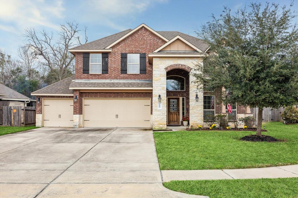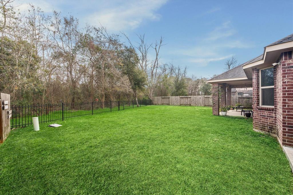 This stunning 2-story home sits on a premium cul-de-sac lot with no back neighbors, backing up to serene wooded trails. Featuring 4 spacious bedrooms—with en-suite. The open floor plan boasts soaring 10 ft ceilings, 8 ft doors, a grand 2-story living area, and large windows with wooded views. The gourmet kitchen includes double ovens, a drop-in cooktop, under-cabinet lighting, and a butler’s pantry. The primary suite offers a bay window, soaking tub, and walk-in shower. Enjoy a 3-car garage with custom cabinetry, a covered patio with a gas connection, and a concrete slab ready for a storage building. Exclusive DR Horton design—only 3 in the neighborhood and the last of its kind built nationwide! Located in sought-after Pearland, close to top-rated schools, shopping, and dining.