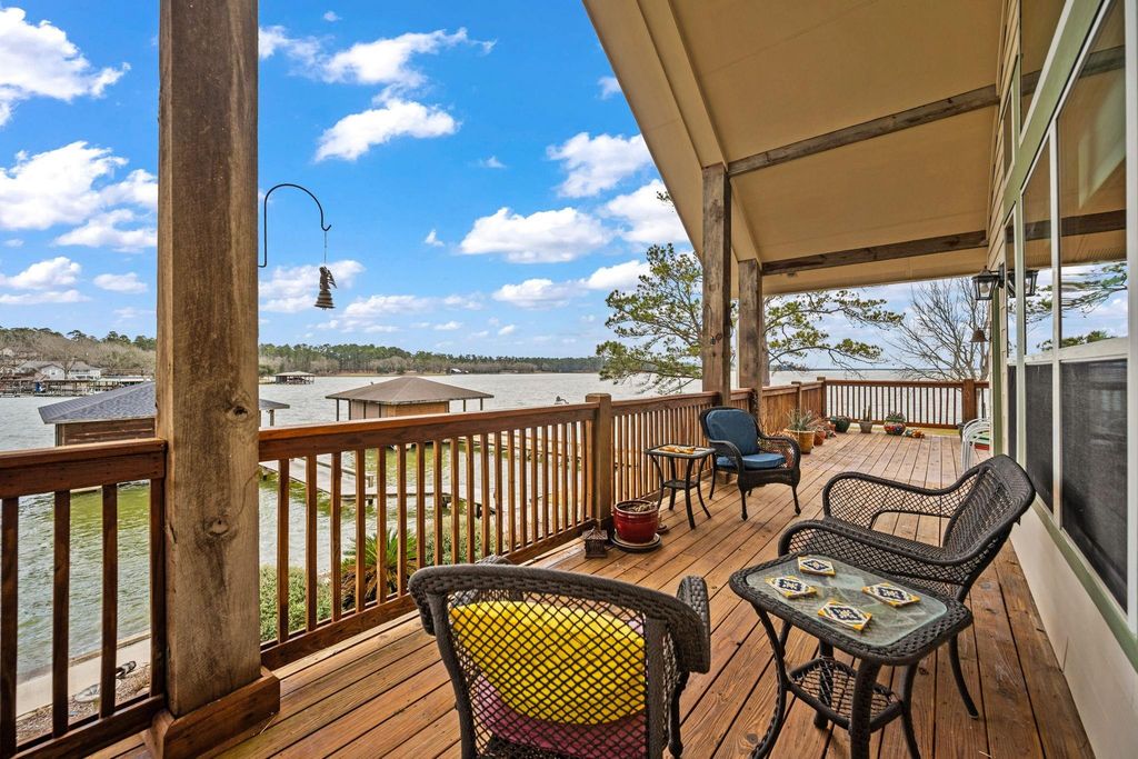 Experience luxury living in this stunning waterfront home in a highly sought-after neighborhood. Perfectly positioned on a peninsula, this home is surrounded by breathtaking water views from nearly every angle. The ground floor entry opens to the 2nd floor with the primary suite on the 3rd floor & the game room & additional living space on the 1st; all easily accessed by the elevator. Inside, soaring ceilings with striking wood beam details set the tone, while custom woodworking throughout the home showcases impeccable craftsmanship & timeless design. The spacious main floor features a large office that transforms into a bedroom. All bedrooms have ensuites. Downstairs, a generous game room provides the perfect space for entertaining family & friends with doors leading to the back yard & the water! A climate-controlled workshop with dedicated golf cart parking adds both convenience & functionality. Residents also enjoy access to a neighborhood community area complete with boat ramp.