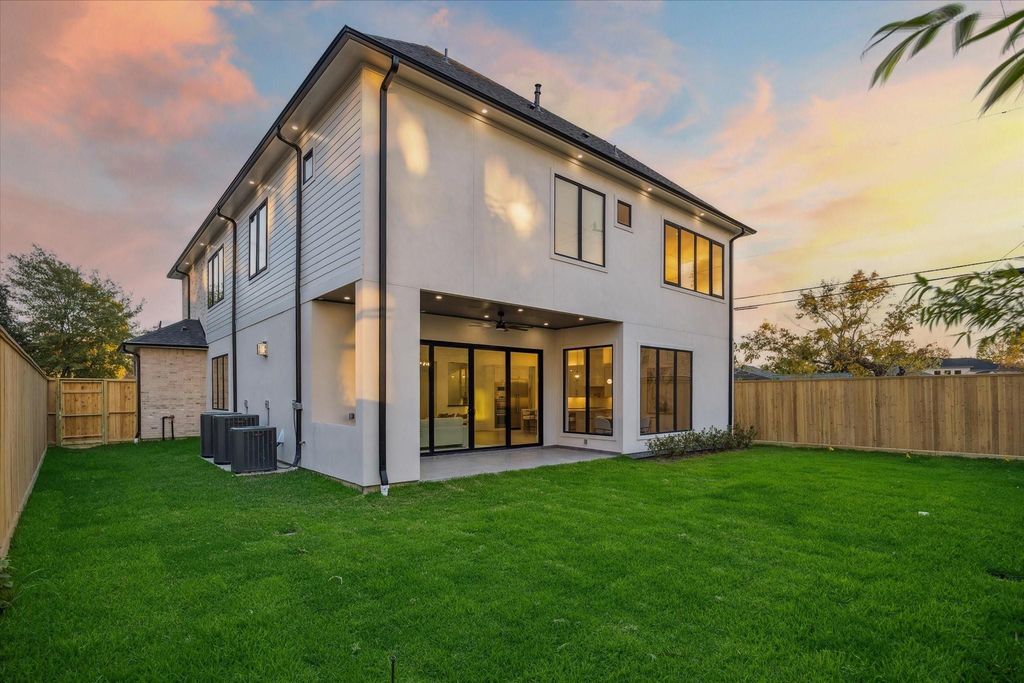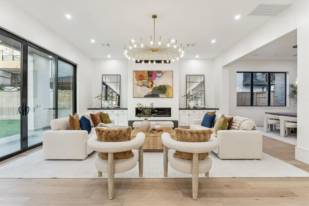 Just completed – New Construction! This stunning home, situated on a beautiful 7,300 SF lot, offers 5 bedrooms and 5.5 baths. The first floor includes an ensuite guest room/office. The open living room is filled with natural light, featuring a gas fireplace, custom built-ins and sliding doors. Great entertaining room with both formal dining room and spacious morning room, entertainment bar, wine vault and prep kitchen. The gourmet kitchen showcases a beautiful quartzite seating-island and counters, Thermador appliance package, and a walk-in pantry. The primary suite offers a morning bar with beverage cooler and a luxurious bath with porcelain floors and walls, separate vanities, freestanding tub, and an expansive closet. A spacious gameroom and three additional bedrooms, each have en-suite baths and walk-in closet, complete the second floor. Beautiful lighting package and impressive details throughout. Spacious backyard has an extended covered patio. Shows beautifully.