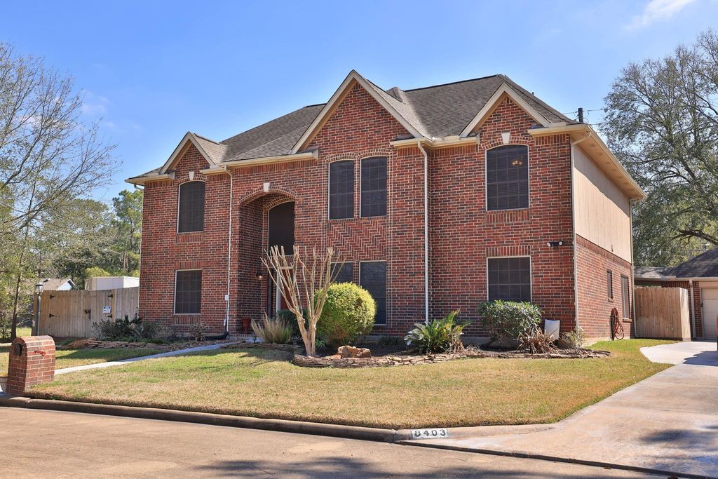 This spacious home sits on a private lot with no neighbors directly behind and no neighbors on one side. Large back yard space with covered patio has plenty of room for outdoor entertaining. Mature landscaping in place with a pretty fountain feature. There is a large storage shed or for lawn equipment, which could also double as a workshop. A double gate to the back yard can accommodate a trailer or small boat to be stored behind the fence. The home has 5 bedrooms which include a downstairs primary bedroom, and an upstairs primary bedroom. The upstairs primary bedroom is on one side of the game room with the other 3 bedrooms on the other side. All bedrooms are very spacious with walk-in closets. Garage has been converted to a versatile space which could be used as an arts & crafts studio, home office, or man cave. It has AC and a bathroom. There is additional storage added on behind the garage. Klein ISD. Easy access to Louetta, Hwy. 249 and The Vintage.
