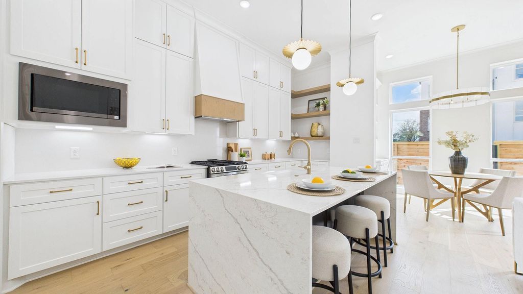 MODEL HOME Located in desirable Brooke Smith, minutes from The Heights, Norhill, & Woodland Heights, this brand-new home offers neighborhood charm w/exceptional city access. Enjoy downtown views from primary suite & easy commute. Light-filled, open-concept first floor is ideal for modern living & entertaining, featuring engineered wood floors, oversized windows, & designer lighting. The chef’s kitchen boasts a waterfall quartz island, soft-close cabinetry, deep storage drawers, under-cabinet lighting, & smart built-ins. Upstairs, the spacious primary suite features coffered ceilings, custom walk-in closet, & spa-inspired bath with extra-long soaking tub & dual rain showerheads. 2nd fl. living area. 2 additional ensuite bedrooms offer flexible space for guests, office, or gym. Addi'l features include a tankless water heater, 16 SEER HVAC, gas connections in yard, fenced outdoor space, attached two-car garage. Never lived in. Prime location near dining, shopping, & entertainment. NO HOA!