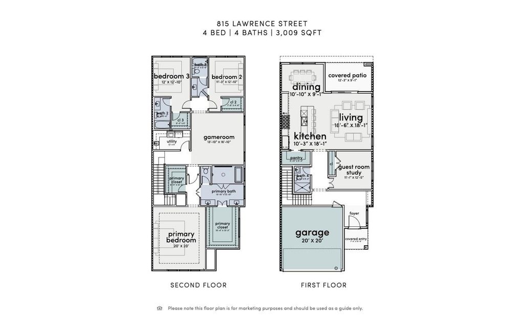 This beautifully designed home in The Heights by TOMO Homes offers an exceptional modern living experience. The property spans 3,009 sq ft and features a layout perfect for comfortable living. The first floor features soaring 11' ceilings, an inviting foyer, a spacious living room that opens to a covered patio and a chef's kitchen with a large island, 48" gas range, double oven and a walk-in pantry. The first floor also includes a dedicated dining room, a guest suite with full bath, a mudroom and a 2-car garage. Upstairs, the luxurious primary suite boasts a spa-style bath with a freestanding tub, oversized shower, dual vanities and "his and her" walk-in closets. Two additional bedrooms share access to well-appointed bathrooms, while a large game room offers flexible space for media, play or work. A full-size utility room adds convenience. The home has a solar-ready roof zone, white oak engineered hardwood floors and abundant natural light throughout.