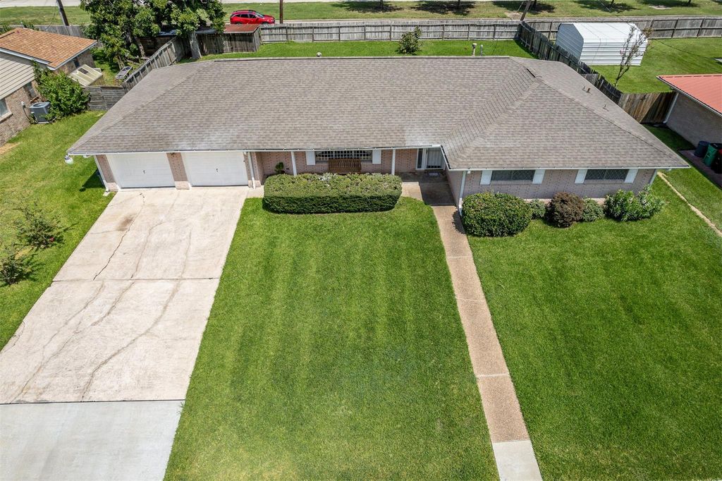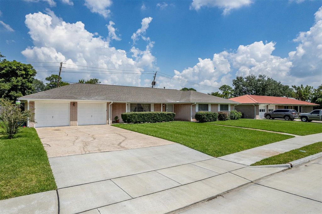 This brick home has been occupied by the same family for over 40 years. It is ready for a new family to make their own memories in. This brick home has 3 bedrooms and two large living areas. One living room is open to the kitchen an breakfast area, ideal for entertaining or gatherings. There is ample storage throughout the home and also an additional storage room adjacent to the garage. The laundry room is a generous size. Back yard has a storage area for garden tools or other items. Roof, water heater, AC, gutters and carpet have been replaced with new in the last few years since 2020. Plumbing has been updated to Pex plumbing and electrical box has been upgraded as well. Lovely quartz countertops in kitchen are a nice upgrade as well. This house is move in ready! Never flooded!