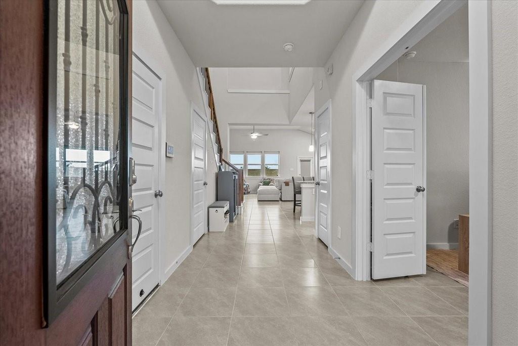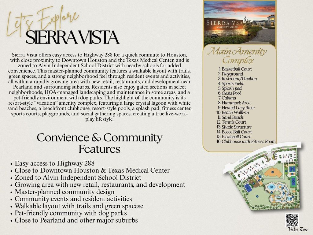 Sizable corner lot hosts this 4/3.5/2 home in Sierra Vista master-planned community. Built in 2023, this home still has upgrades: all hardwood steps, add. attic insulation, water softener, rev. osmosis kitchen tap, generator receptacle/gas hookup & new shades. At almost 2600 sq. ft., this home’s layout = great flow for family/friends/entertaining. A home office inside the front entry is large & perfect for working from home. Living area has large windows looking out into the covered back patio & fenced yard. Spacious kitchen boosts 42” cabinets, classic white subway tile backsplash, gorgeous granite counters, large island w/ sink & breakfast bar. Large 1st floor primary ensuite has a beautiful bath w/ double sinks, separate tub/shower & large walk-in closet. Upstairs are 3 more good-sized bedrooms, 2 full baths & a flexible gameroom & laundry area. Create memories in a beautiful home near Nichols Mock Elem. School, shopping, restaurants & highway access for an easy commute.