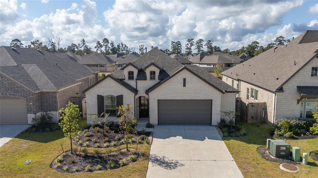 BETTER THAN NEW! This fully-bricked one-story home built by Highland Homes is ready and waiting for new owners. Oversized 2-car garage with great space for extra storage. Functional and easy-living floor plan with a private study overlooking the front lawn. Three secondary bedrooms, 2-full secondary baths. Laundry room with beautiful accent tile flooring. Washer & Dryer included! A showcase kitchen with beautiful tiled backsplash, quartz counters, stainless appliances, center island with breakfast bar. HUGE walk-in pantry. Grand open family room with lots of natural light. Spacious primary with ensuite bath, dual sinks, walk-in shower, soaking tub and walk-in closet. Pristine & clean! Crisp white walls and luxury vinyl floors through all the main living areas. Amazing covered back patio and NO BACK NEIGHBORS!! Just north of The Woodlands, and convenient to shopping, dining and commuting thoroughfares.