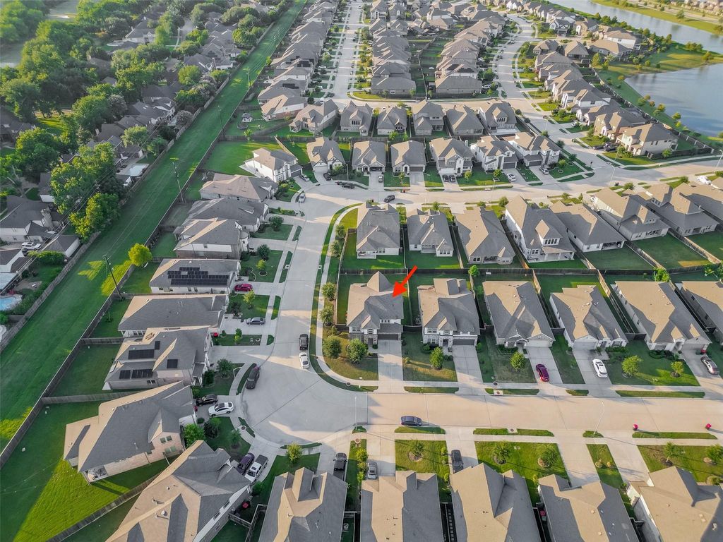 Walk in to lavish upgrades in this Newmark Home, located in the sought-after Harvest Green community, this beautifully upgraded home offers the perfect blend of luxury, comfort, and functionality. Interior highlights include soaring ceilings in the living room, elegant wood-look tile flooring throughout the main living areas and downstairs bedrooms, and plush upgraded carpet in secondary areas. The designer kitchen features upgraded countertops, stylish backsplash, enhanced cabinetry, and built-in microwave and oven. Enjoy a bay window in the breakfast nook and modern upgraded railings. The primary suite offers a spa-like bathroom with a Jacuzzi tub and decorative tile band in the shower. Upstairs includes a media room with built-in surround sound, a spacious game room with added storage, and an en suite bedroom with walk-in closet. Relax outdoors under the covered patio with a gas line for grilling. Additional features include side brick exterior and a water softener system.