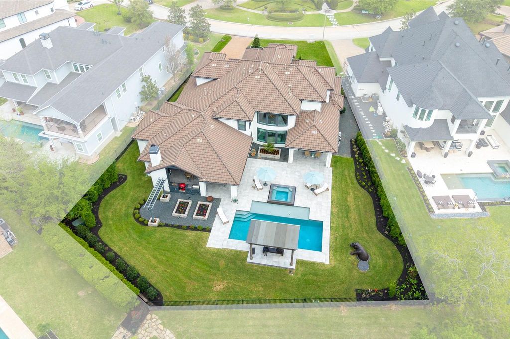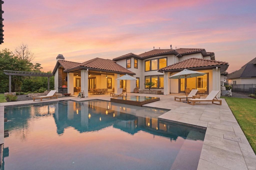 Stunning contemporary home on a premier golf-course lot in Sterling Ridge, featuring a pool, spa, outdoor kitchen, a private casita, and a magnificent collection of sculptures displayed throughout the property (see brochure attached), high ceilings, expansive windows framing beautiful golf-course views. The first floor includes a game room, media room, wet bar, a world class wine cellar, creating an ideal layout for everyday living and entertaining. The living room features a gas log fireplace, and the study provides a quiet workspace. The luxurious primary suite offers a spa-like bath with separate tub and oversized shower, plus a walk-in closet with custom built cabinets. The casita includes a full bath and private entrance perfect for guests, multigenerational living. Additional highlights include 4 bedrooms plus casita, 6.5 baths, a three-car garage,an impressive outdoor living area with covered kitchen, and curated sculptural pieces that elevate the home’s artistic ambiance.