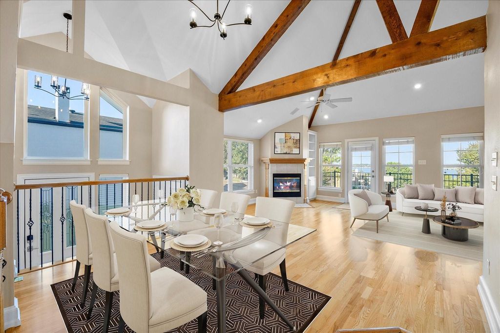 This lakeview home is for active lifestyles. Offering gym area, room for bikes, motorcycle and golf carts. EV charging in the garage. Community has marina, two pools, parks, jogging trails, tennis, beach, lakes for fishing. Upscale living with fabulous lake views of Lake Ray Hubbard and the Dallas skyline. Bright, open floorplan with beamed ceiling and wall of windows for endless views. Lots of space, both indoor and outdoor, for entertaining. Updated master bath has soaking tub and his and hers vanities. Downstairs is a private area for gameday watching or great for guest or in-law suite with its own entrance. Don’t miss this opportunity. The sunsets are fabulous!