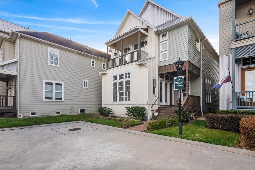 SECONDARY BEDROOMS ARE LARGE, which is very unusual. ENERGY EFFICIENT Four bedroom, three and 1/2 bath, Amsterdam style home in a gated community with large FRONT PORCH. Three (3) car garage with large built out wooded attic storage. High ceilings throughout the home. The kitchen features double stacked cabinets, oversized island with high end quartz countertop. Stainless steel Bosch appliances and updated pendant lighting above the island. Large oversized secondary bedrooms, which is hard to find. VERY LARGE master closet. ALL landscaping maintenance is done by the HOA. Two acre lake/ park area, two pools with walking trails The new Spring Branch hike and bike trail runs right next to the community.