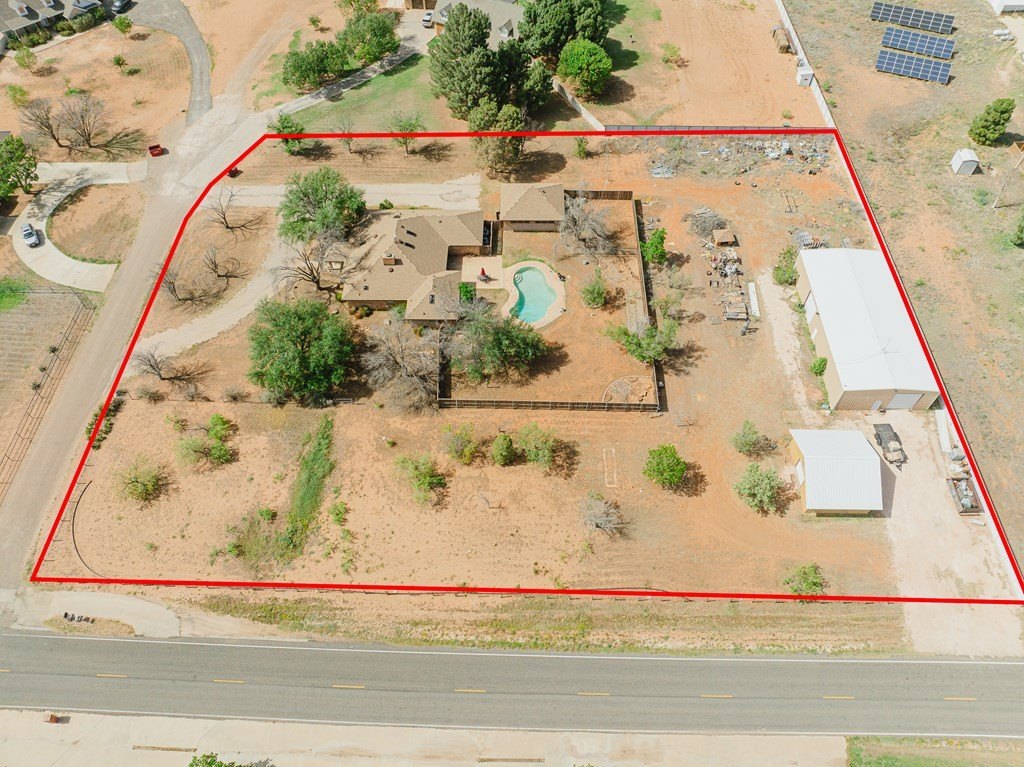 Your country dream home awaits! Beautiful 4 bed, 3 bath sitting on 2.5 acres and packed with features - skylit kitchen with cabinets galore, two living areas, formal dining area, sequestered primary suite, relaxing sunroom, 3 car garage. A backyard made for Texas summers with an inground pool! Need space for hobbies or business? You''ll love the massive 40x80 insulated shop with an office and restroom, plus a barn with two stalls! All this on a corner lot with quick access to Midland & Odessa!