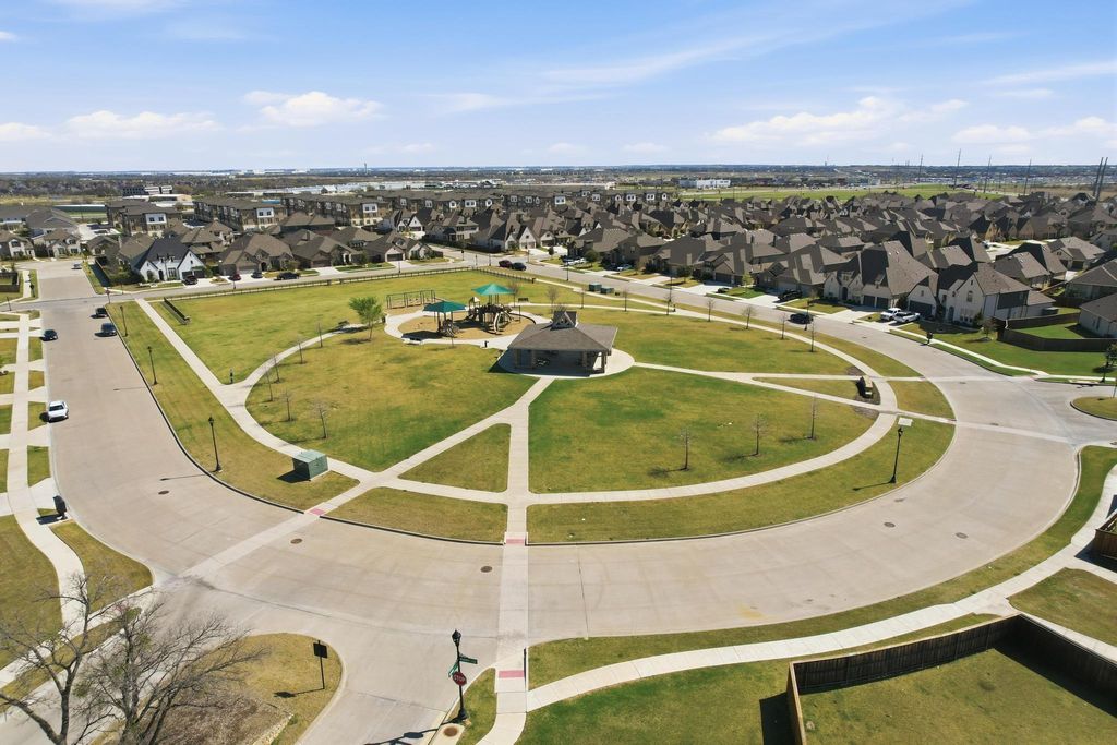 Discover a lifestyle of effortless modern luxury in this 2021-built two-story sanctuary where soaring ceilings and extensive luxury vinyl plank flooring set a grand, airy tone throughout the open-concept layout. The culinary space is a showstopper for both daily meals and high-end entertaining, featuring quartz countertops, sleek cabinets with modern hardware, and stainless steel appliances. A massive island with a breakfast bar serves as the ultimate gathering hub, anchored by a stylish apron-front sink. Retreat to the secluded downstairs primary suite, a private haven boasting a dual-sink vanity, an oversized shower, and a genius walk-in closet that offers a direct pass-through door to the utility room for seamless chores. Work with focus in the dedicated home office or head upstairs to the expansive game room, perfect for movie nights and recreation. Every bedroom in this thoughtfully designed 3,912-square-foot floor plan includes its own walk-in closet, ensuring ample storage for everyone. Downstairs highlights include 8-foot 6-panel interior doors that elevate the interior aesthetic, while the custom mud room provides a clean transition from the rear-facing two-car garage. Efficiency is built-in with LED lighting, a tankless water heater, and a private backyard featuring a covered patio and pristine, low-maintenance artificial turf grass. Residents of Wellington enjoy exclusive access to the community pool, lake, park, and playground, all with easy access to Highway 287 and downtown Fort Worth for effortless commuting. Take a first-person look at this gorgeous home! Click the Virtual Tour link to see the 3D Tour!