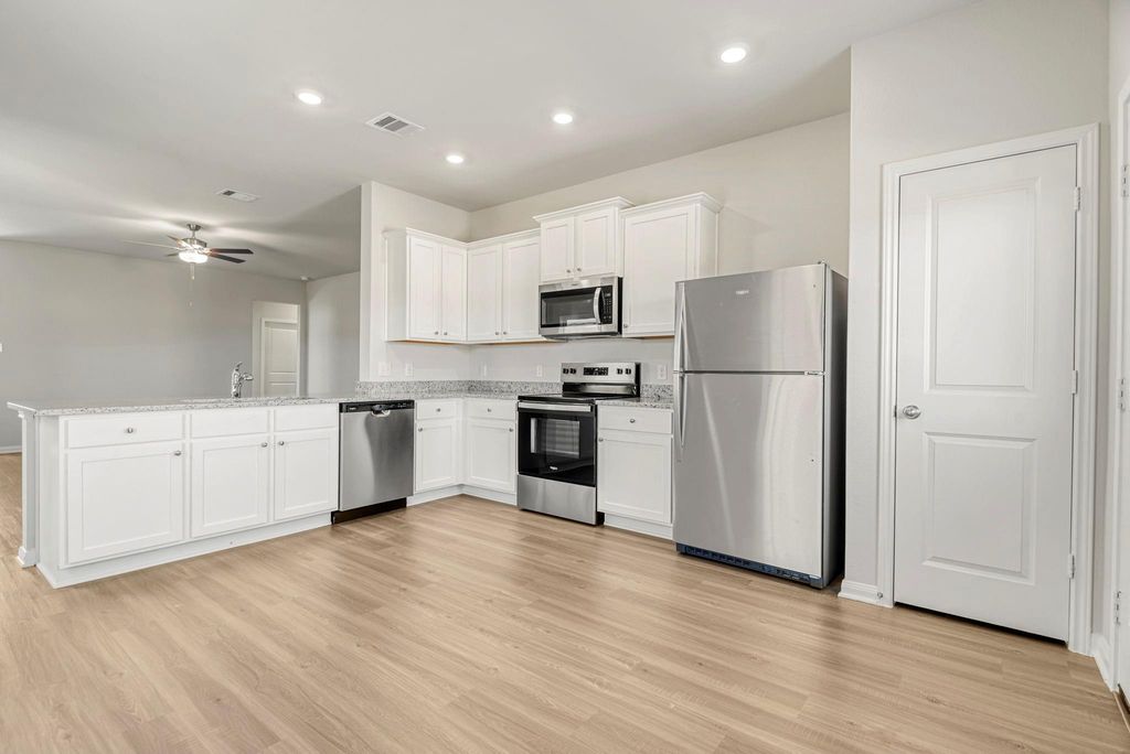 Located only minutes from Downtown Houston, Park Vista at El Tesoro gives you easy access to the Medical Center, Museum District, local sports arenas, and so much more. The Pecan plan by LGI Homes in Park Vista at El Tesoro offers a gorgeous one-story retreat with three bedrooms, two bathrooms and an attached 2-car garage. The kitchen includes a full suite of Whirlpool appliances and features a dine-in breakfast room and breakfast bar overlooking the spacious family room. The private master suite features a spacious bedroom with two windows and a luxurious bathroom with a sprawling vanity and linen closet. Energy-saving features include a programmable thermostat, recessed LED lighting in the kitchen, and double-pane windows.
