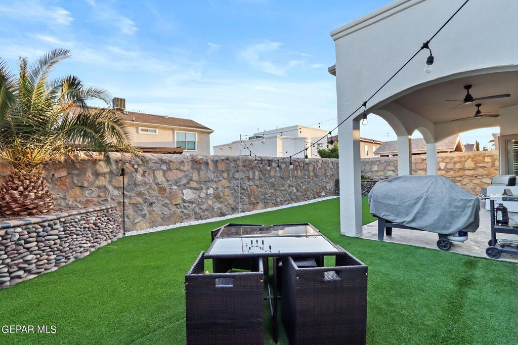 Welcome to this beautiful GEM in desirable East Side VENTANAS subdivision. Featuring 3 Bedroom with Laminate wood flooring, spacious Master bath with granite counter tops, double vanity, gorgeous shower and a powered bath tub. Open floor plan with lots of space in family room decorated with Cantera natural stone and plenty counter top in bar kitchen. Includes a wet bar perfect to entertain guests. Back yard features a covert patio and synthetic turf trough out. Garage includes a Water softener system connected to all faucets in this Home, Tankless water heater and epoxy paint. Schedule your visit today...